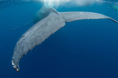 下にいるクジラを水面から上がってくるのを待っていると、皆さんの近くにデーンっと登場!!