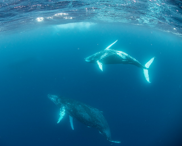 後ろからついていくと、近くに1頭、また別に1頭、と上がるクジラたち、このクジラもパーティーに加わり5頭でヒートラン!!