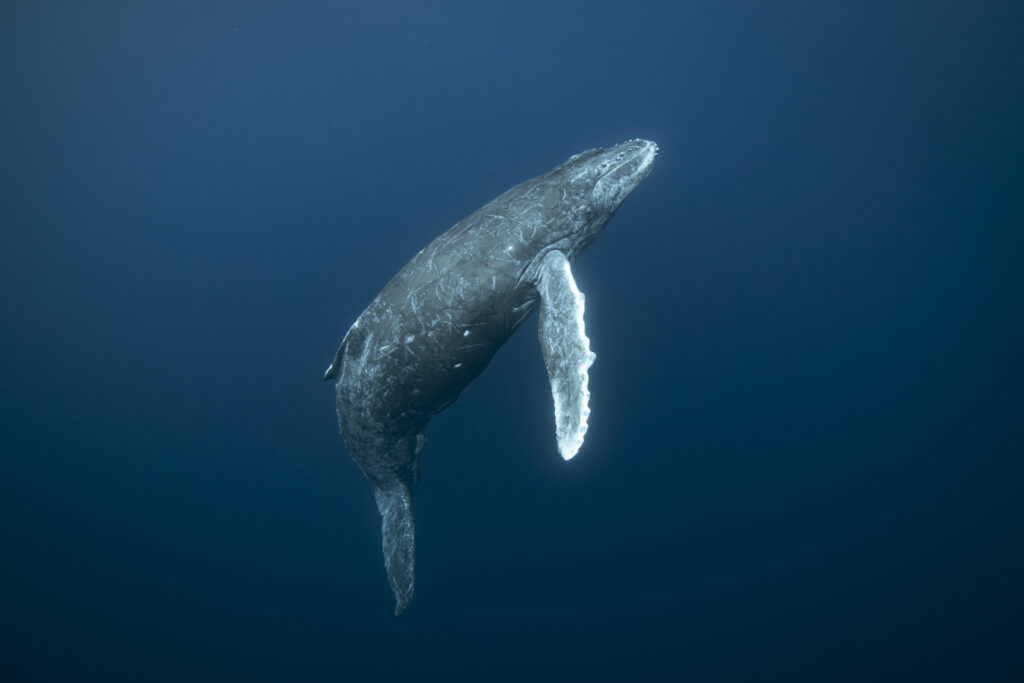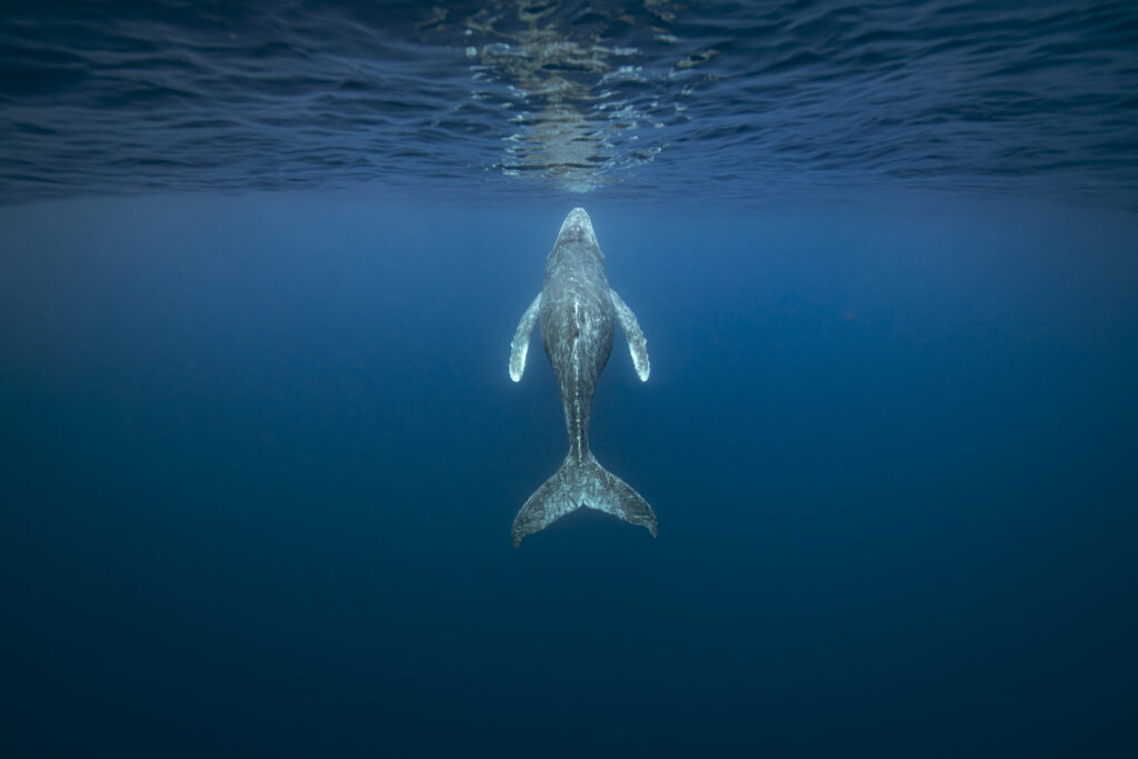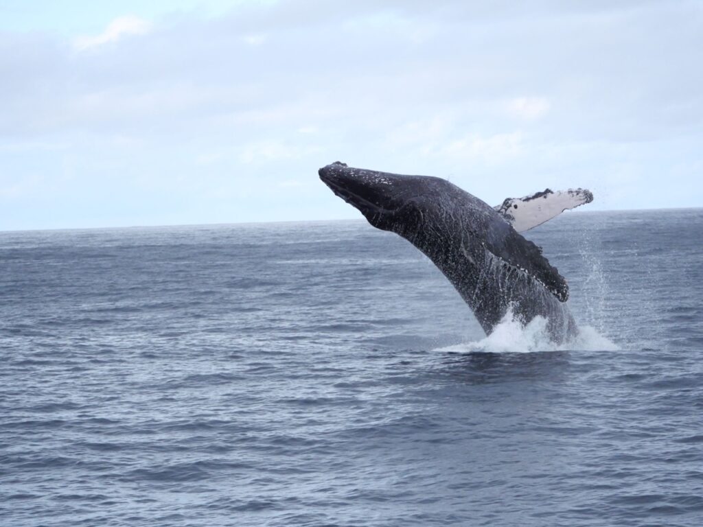 そのクジラを追っていると違うクジラのテールが、シンガーのオスで、20mくらいで歌を歌っていたようです!!