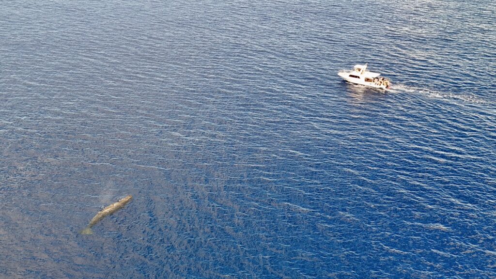 ちょっとシャイな子もいますが、そのクジラたちも少し距離を取って見せてくれるんです。