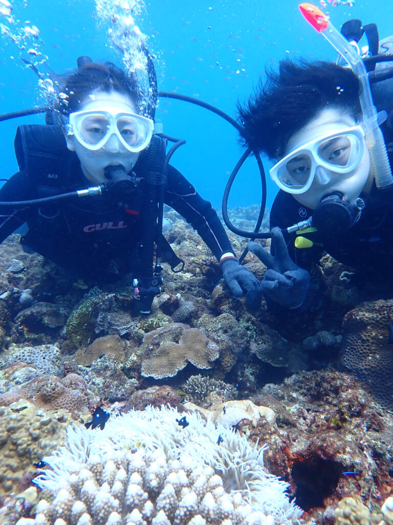 シュノーケルも難なく、サンゴとデバスズメダイの群れと楽しんでいただきました。