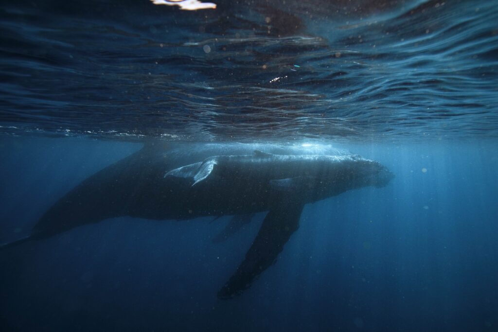 子クジラの母クジラに甘える姿がこちら♪